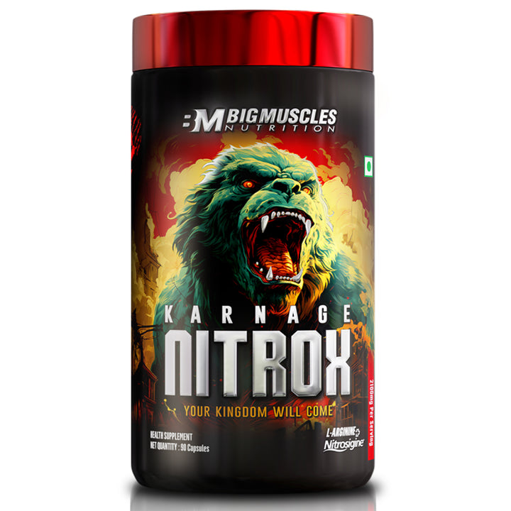 Beta-alanine (1g per serving) combats muscle fatigue, allowing you to push harder and for longer. BigMuscles Nutrition Karnage isn't just a pre-workout powder; it's your partner in achieving body and muscle growth. Embrace the power of Karnage and experience workouts like never – more energy, strength, and muscle